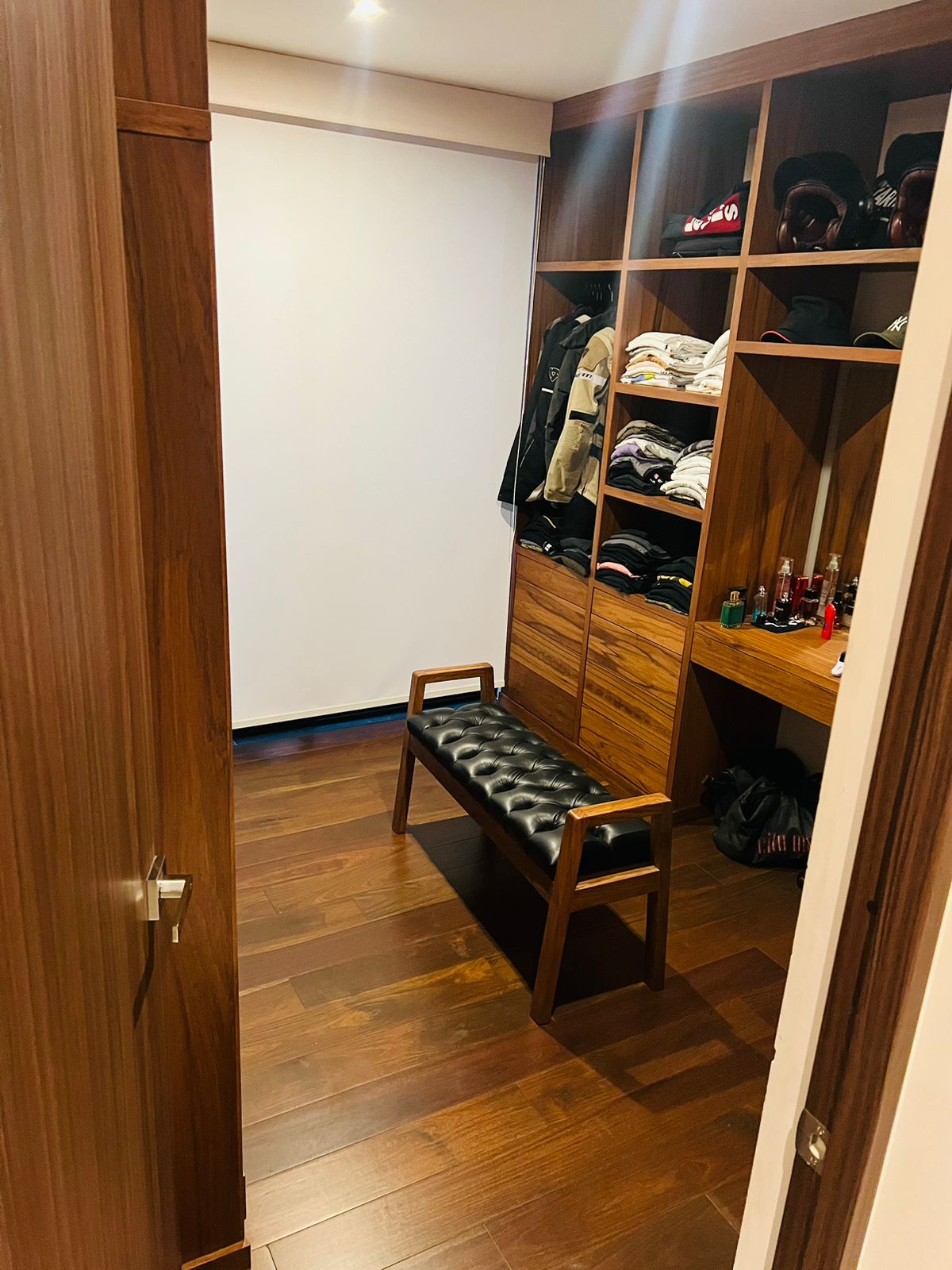 Tercera recámara acondicionada con clósets de lujo se puede usar como vestidor o bien como estudio, con ventanal de piso a techo con acceso a la segunda terraza.
