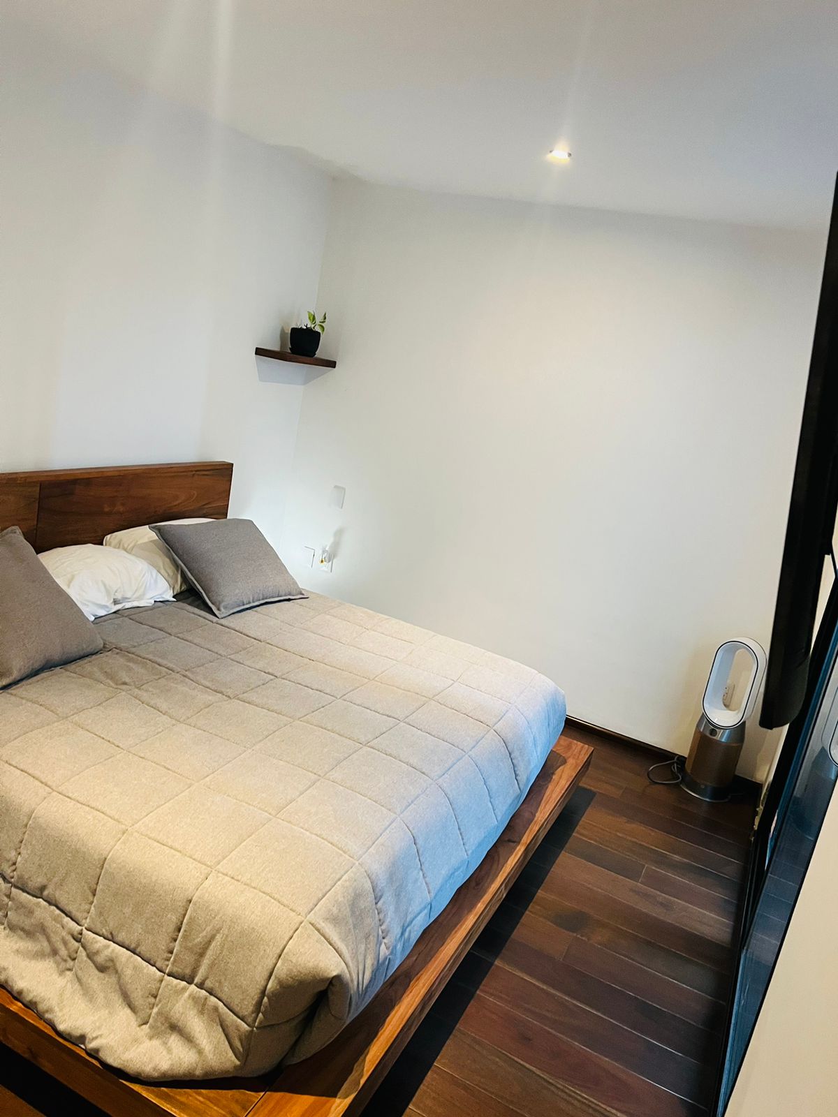 Amplia recámara principal con vestidor, baño completo con acabados de lujo, cancel de vidrio y ventanal de piso a techo con acceso a terraza principal.