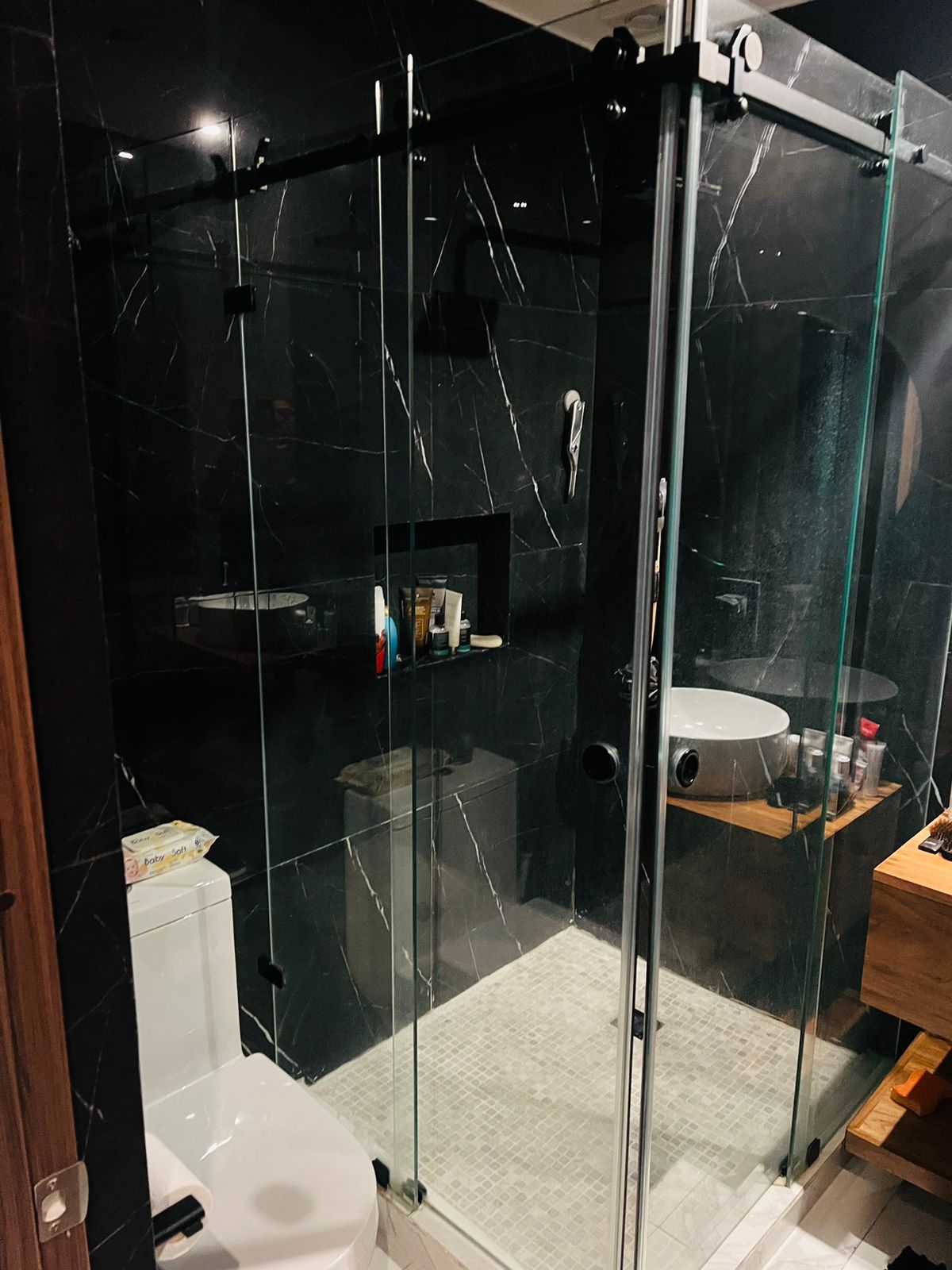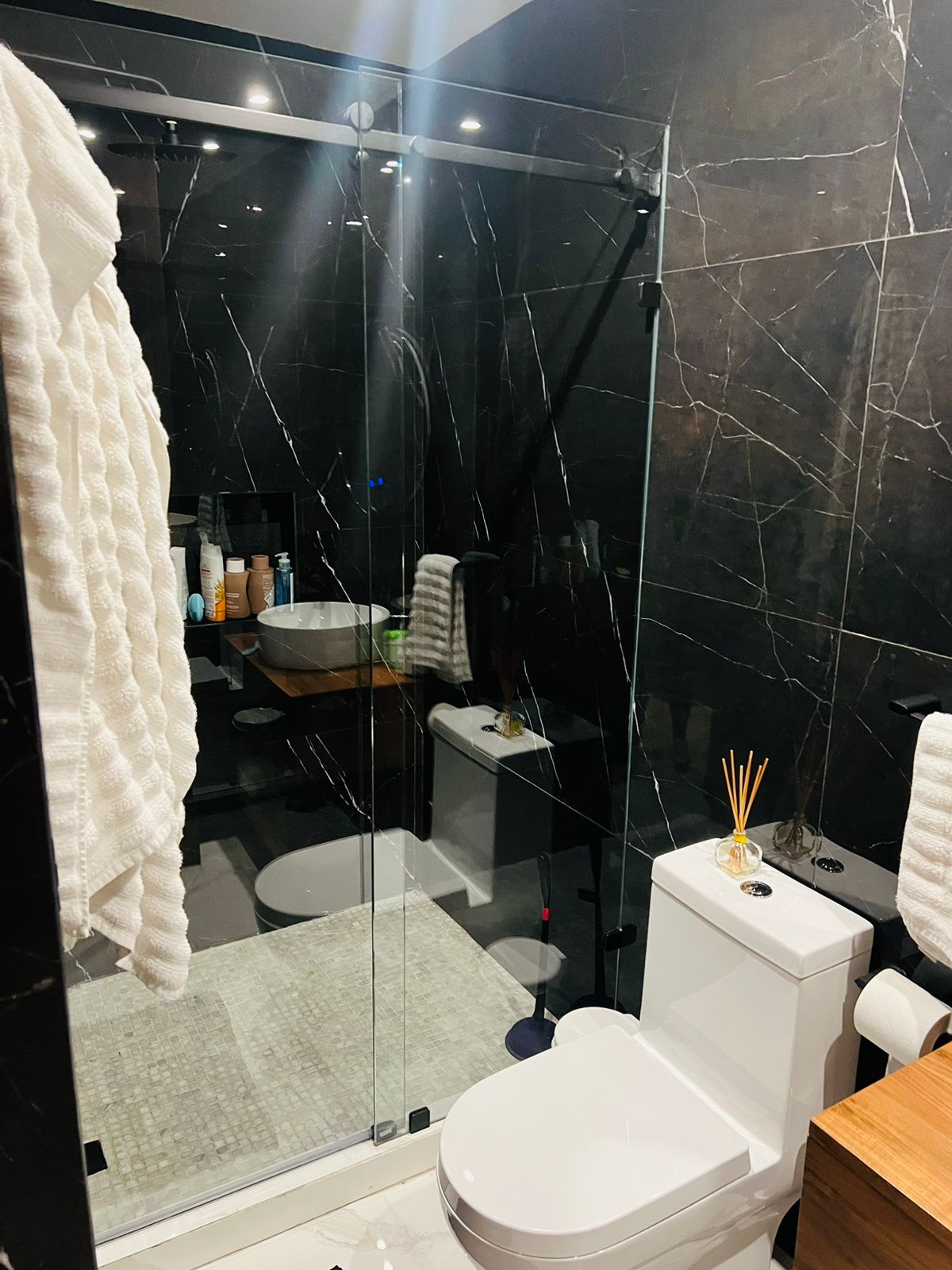 Segundo baño completo con cancel de vidro y acabados de lujo para visitas y compatir con las habitaciones secundarias.