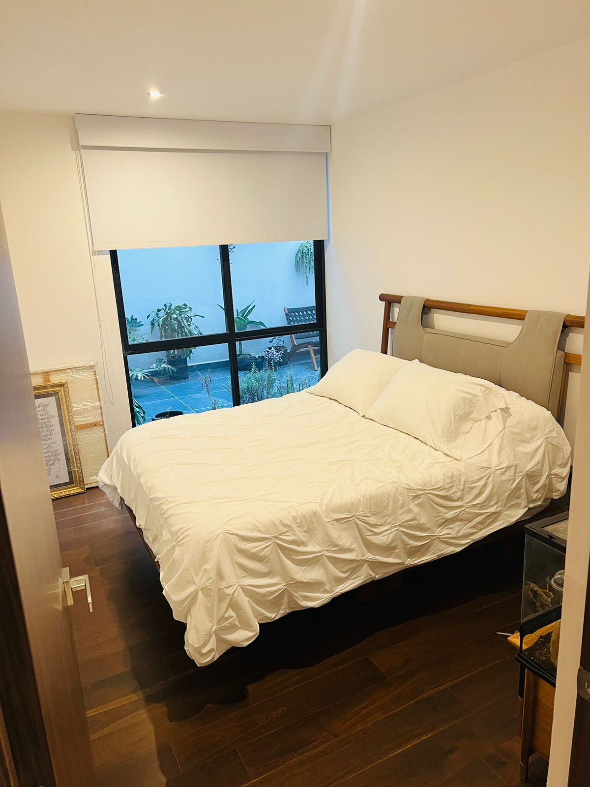 Recámara secundaria con ventanal de piso a techo y acceso a terraza principal.