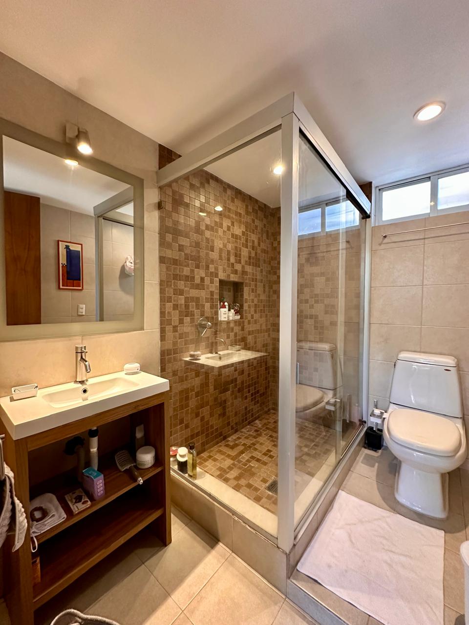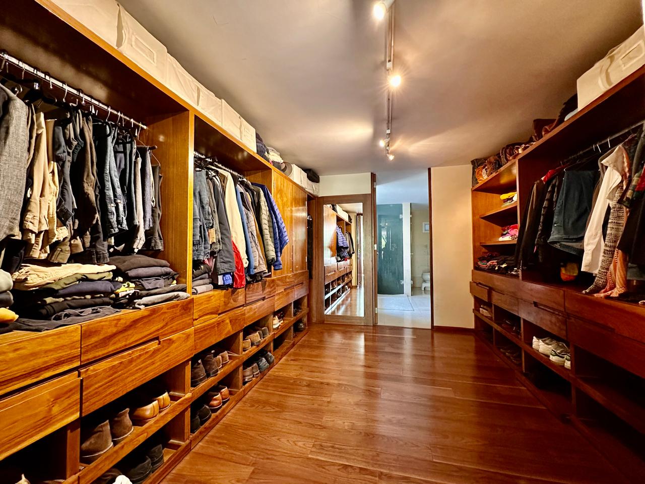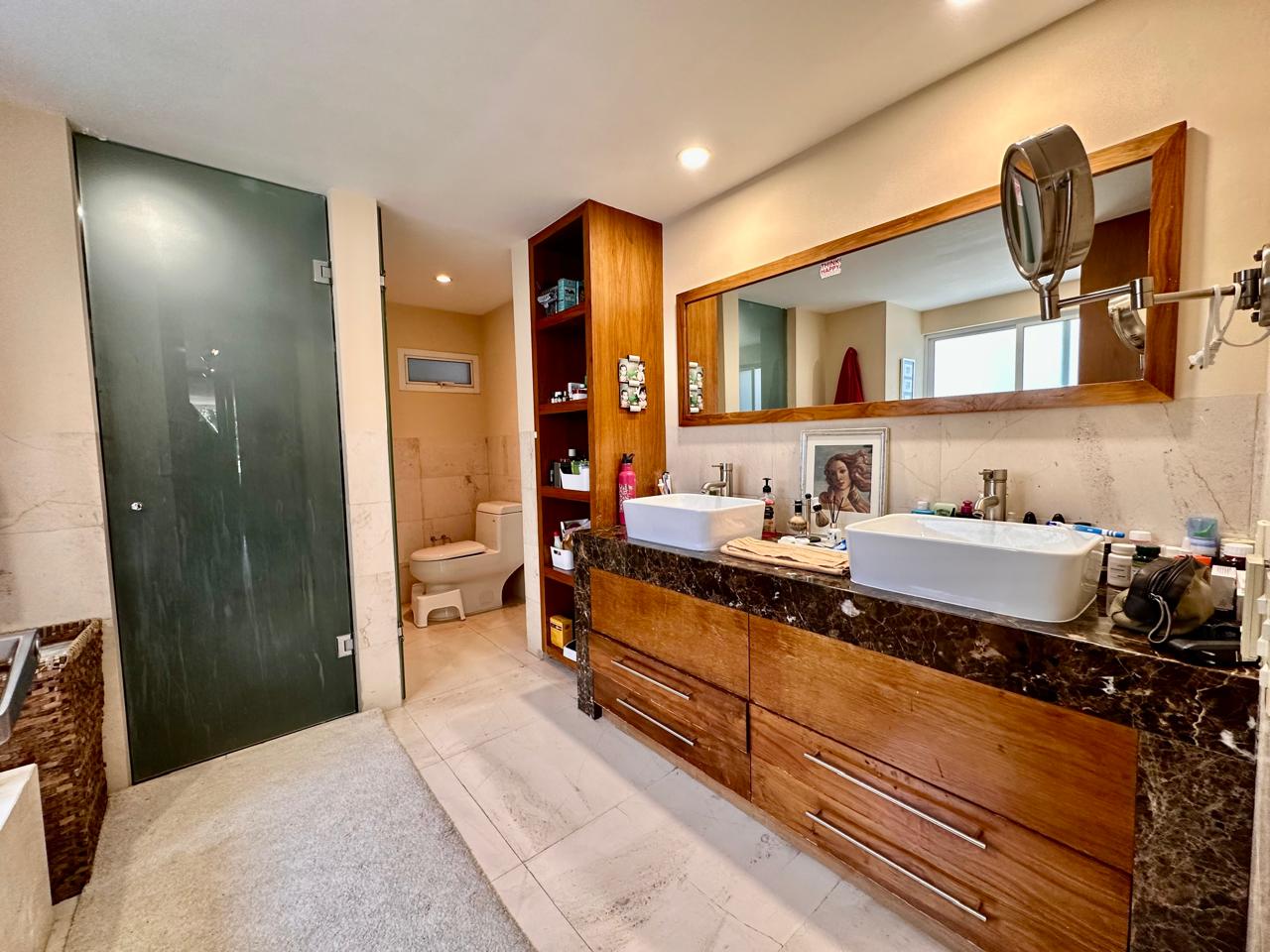 3 recámaras. La recámara principal con baño con tina y gran vestidor. Las recámaras secundarias comparten baño.