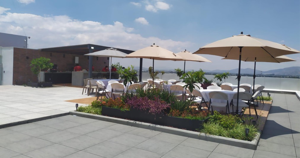 Inicia este año en un edificio de 9 pisos nuevo que cuenta con una obra robusta y moderna en la cuál tendrás en planta baja un área comercial y un lobby con vigilancia 24/7, elevadores modernos de última generación y gran espacio, 5 niveles de estacionamiento con más de 250 lugares disponibles y valet parking para tu comodidad, instalaciones eléctricas, hidraúlicas listas para baños, cableados y todo lo que tu Empresa necesite, roof garden para 70 personas con asadores y servicios de baños en donde podrás realizar un evento o presentación.