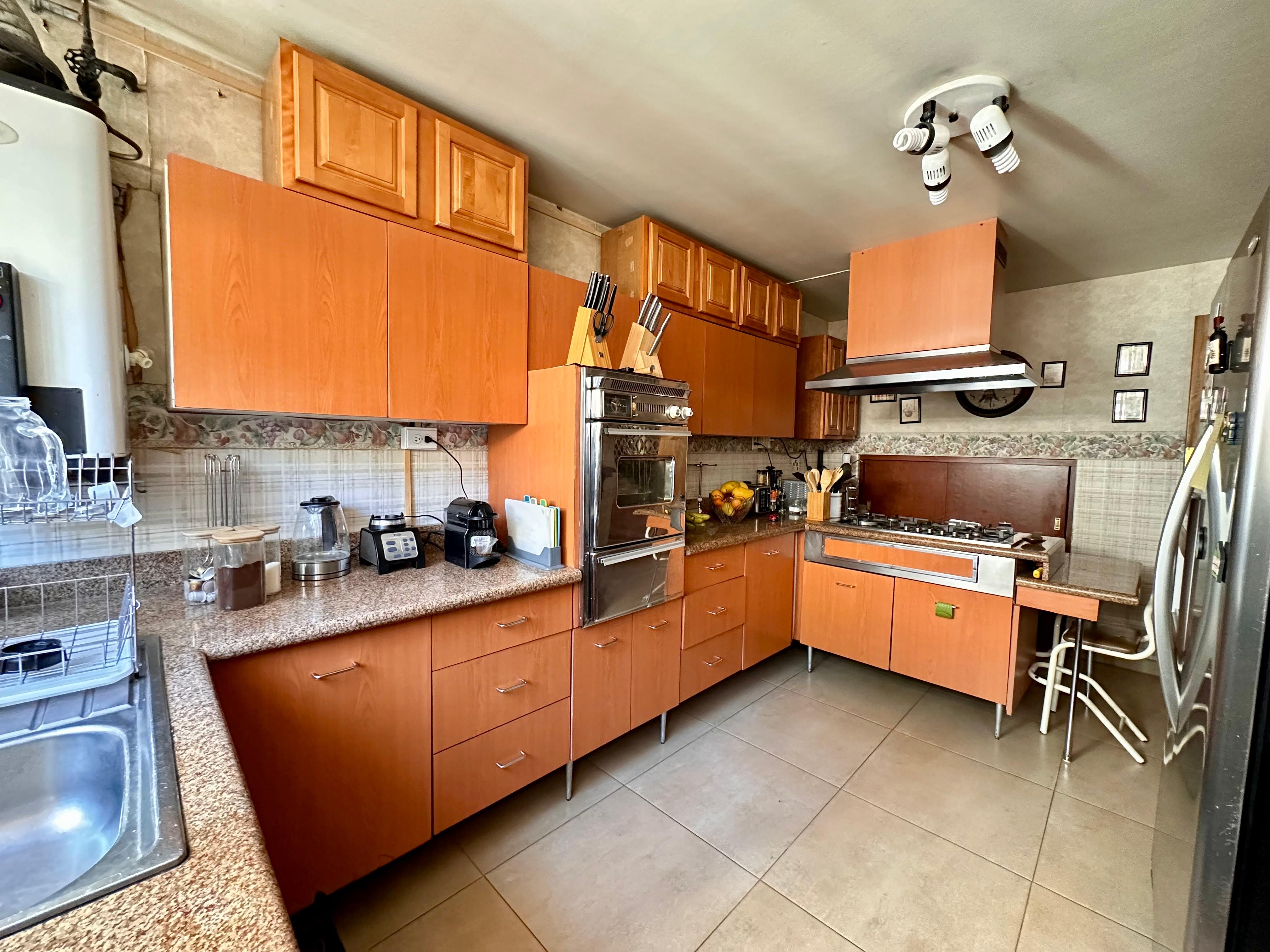 Cocina con alacena, cuenta con salida al patio de tendido y cuarto de servicio que tiene baño completo.