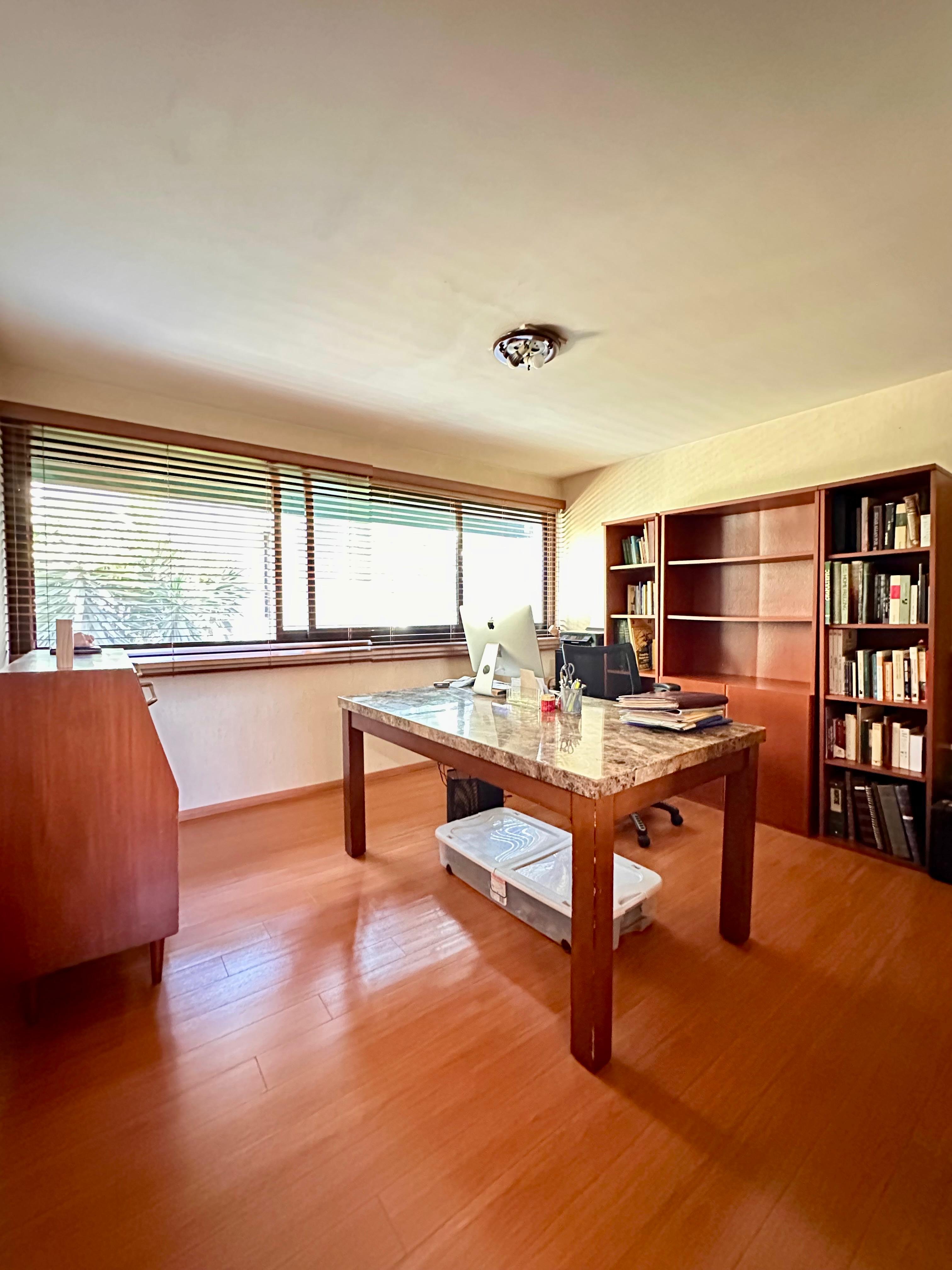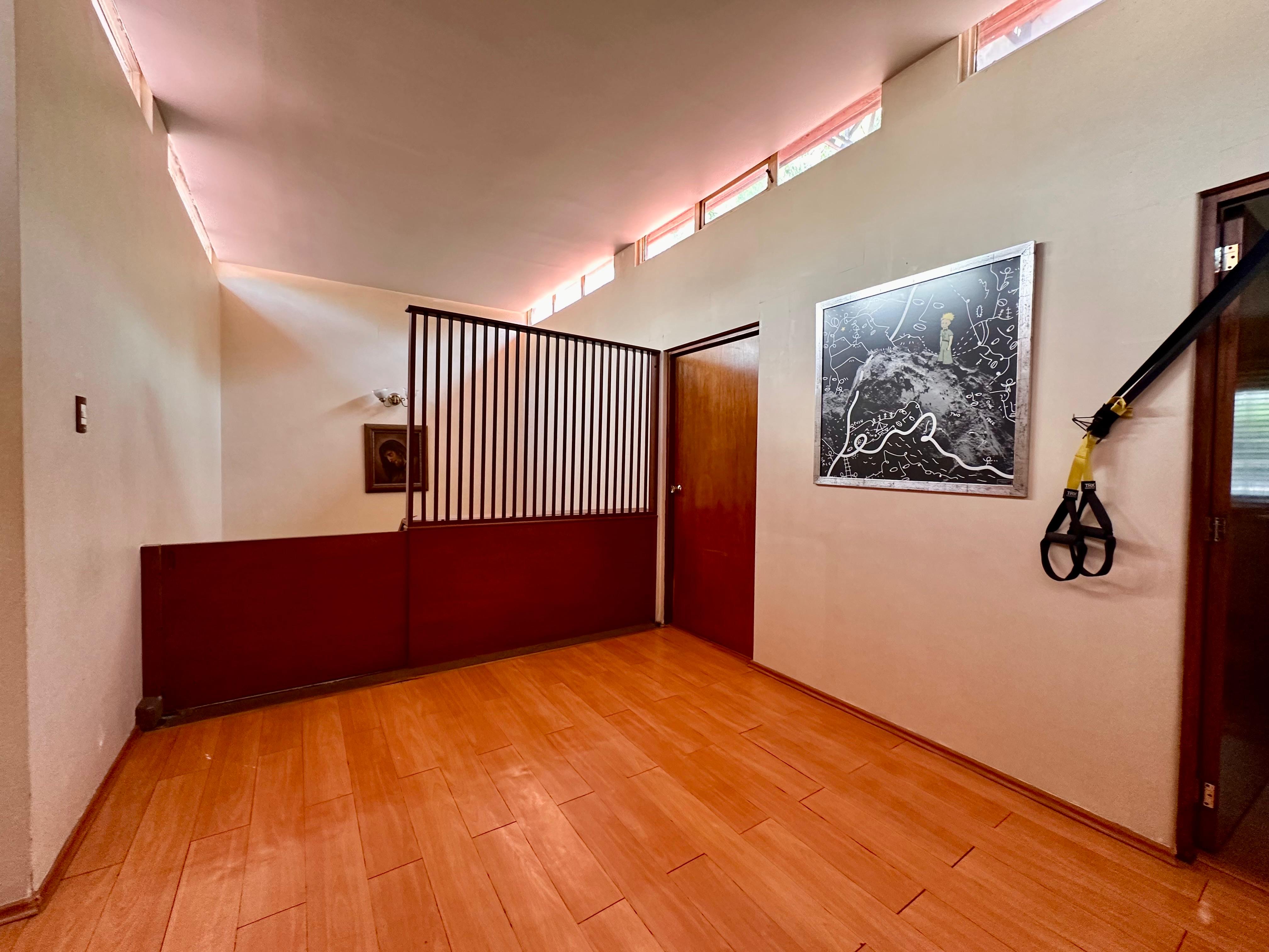 Un espacio abierto ideal para family room o área de trabajo con muy buena iluminación.