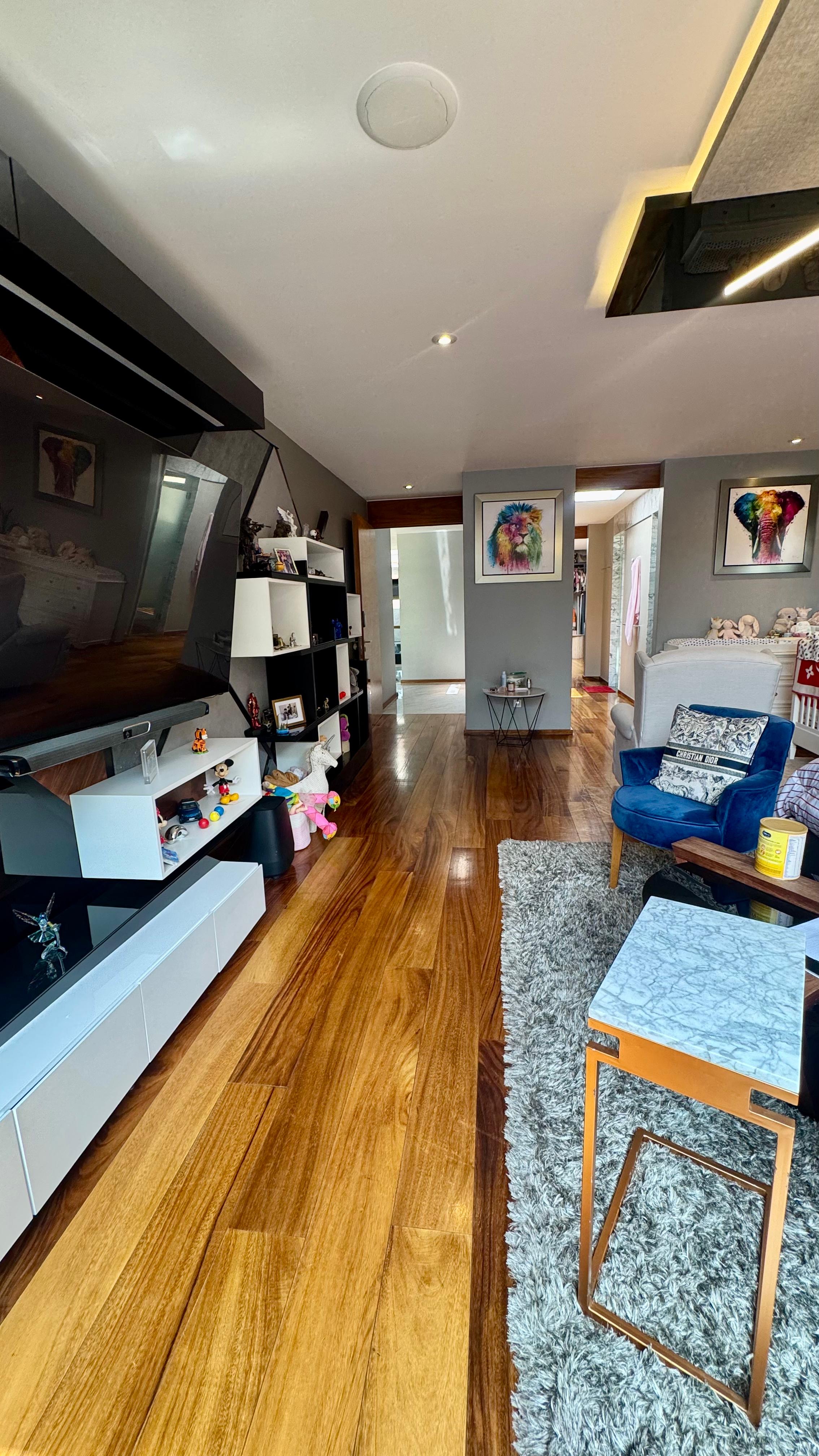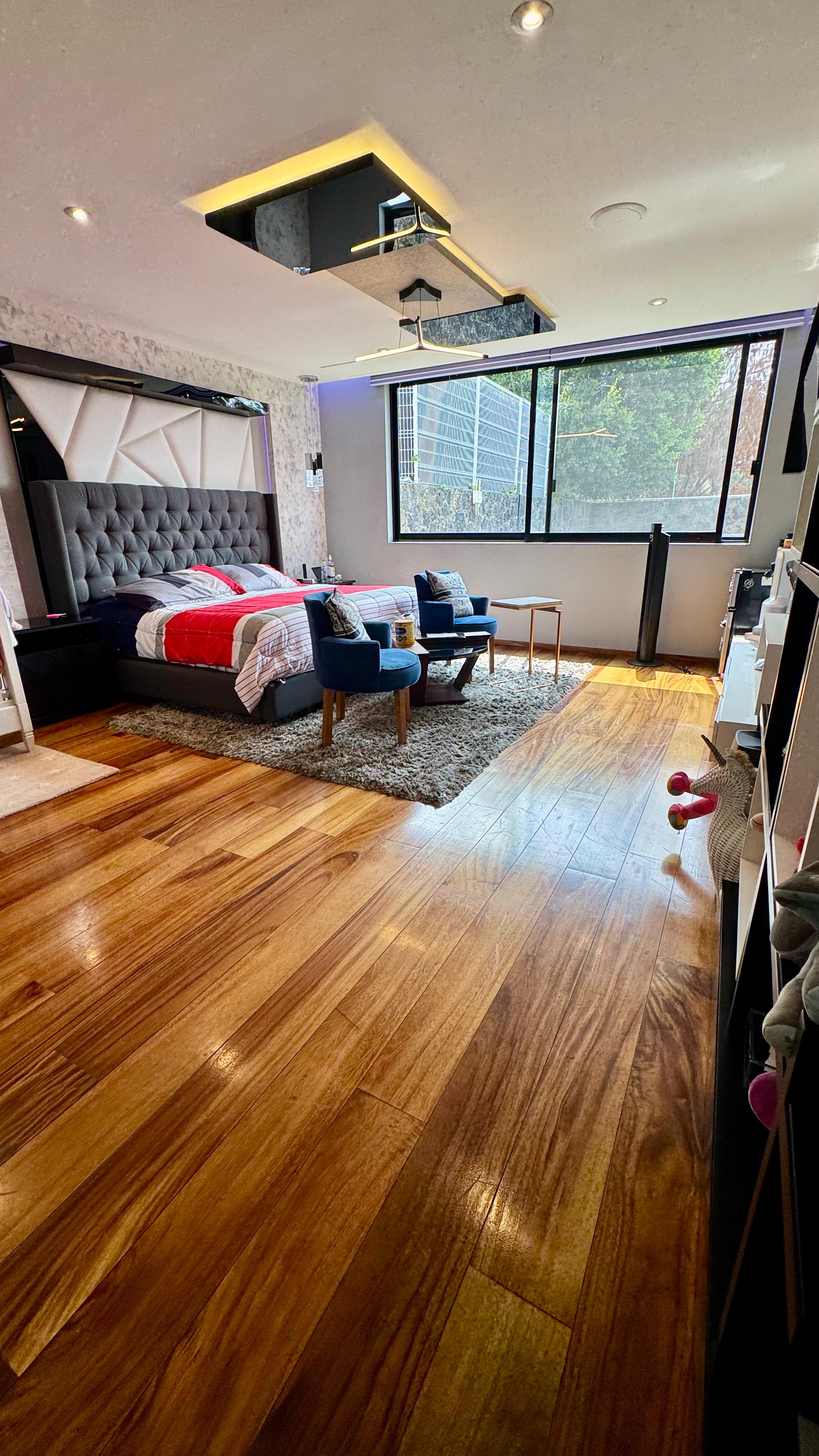 Pisos de ingeniería para sala, comedor, medio baño de visitas, habitaciones y vestidores.