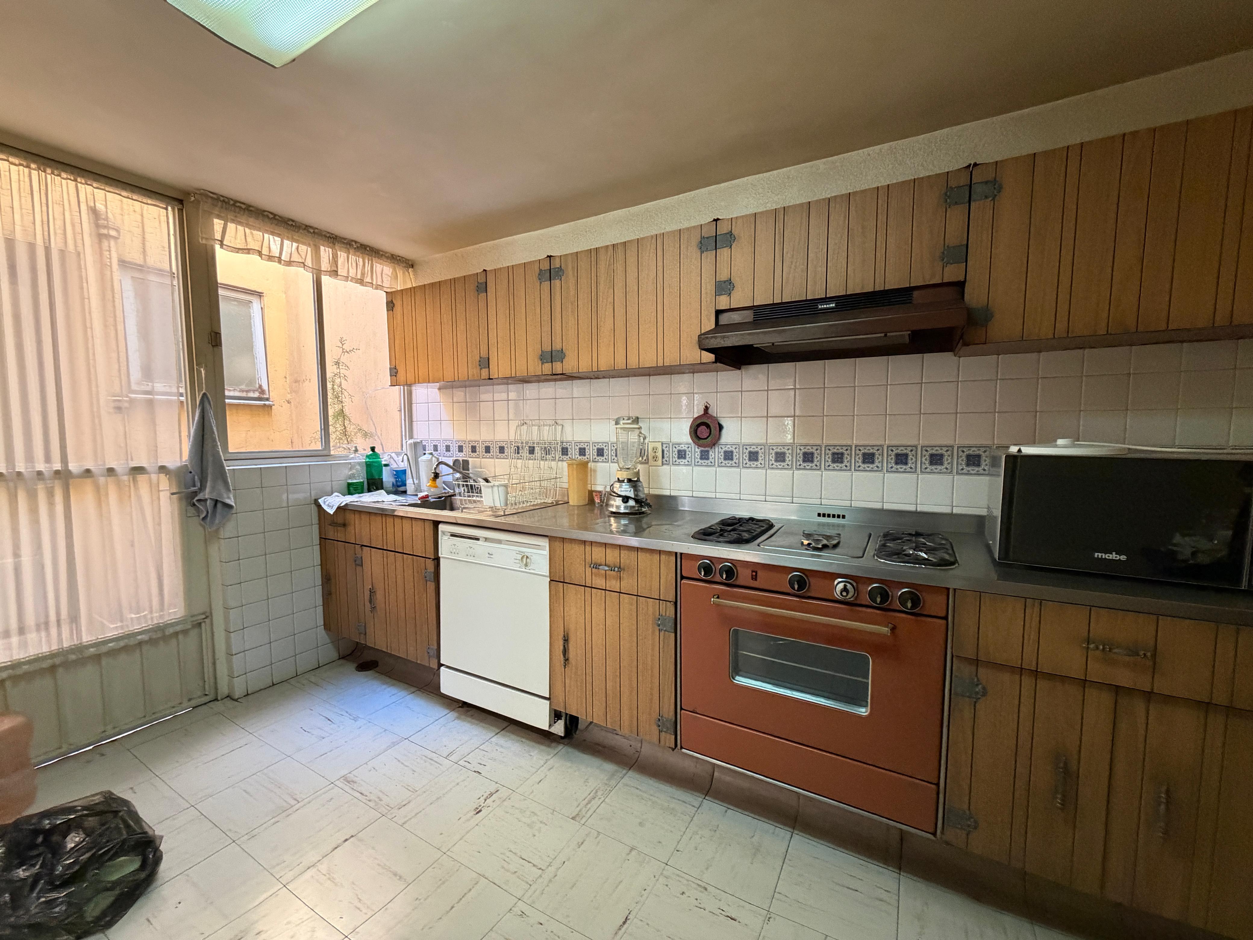 Cocina con antecomedor, doble alacena y salida a un patio que puede ser de tendido o de servicio.