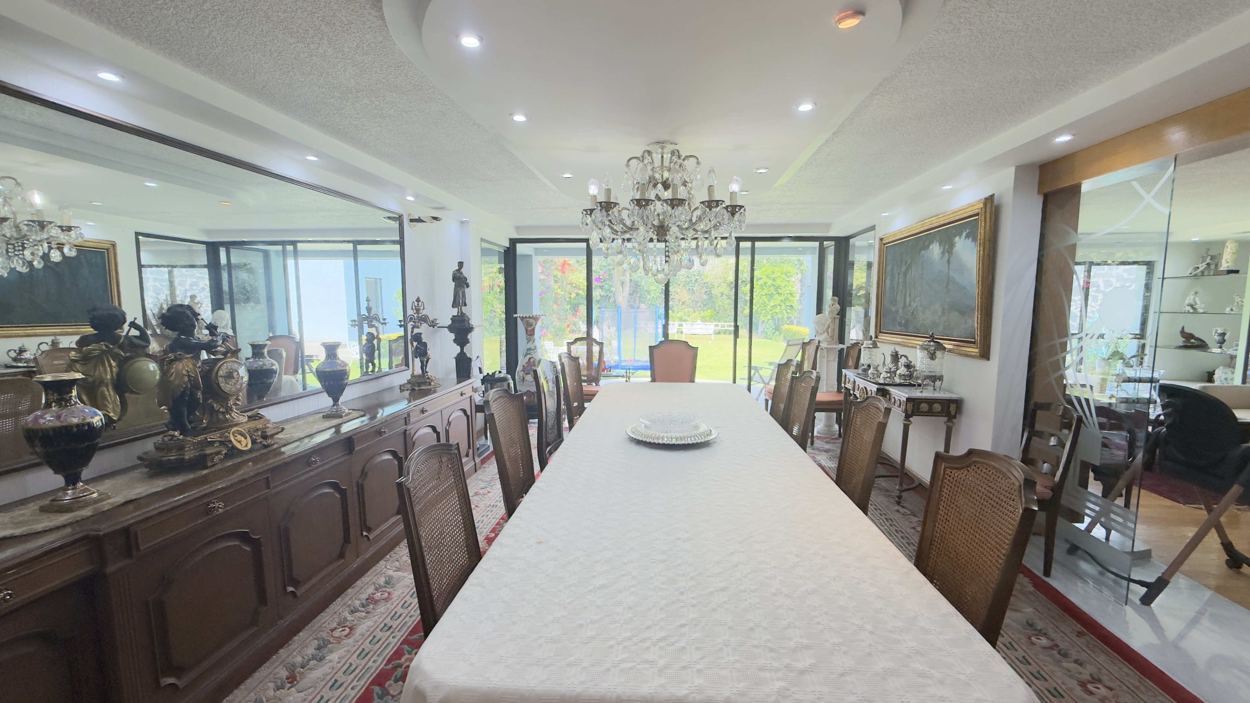 Antecomedor con cuarto para vajillas y salida a la terraza que se integra al jardín de la propiedad.